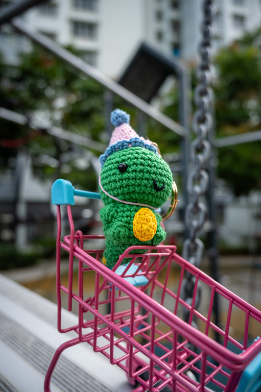 Crochet Party T-Rex Key Ring (Green)