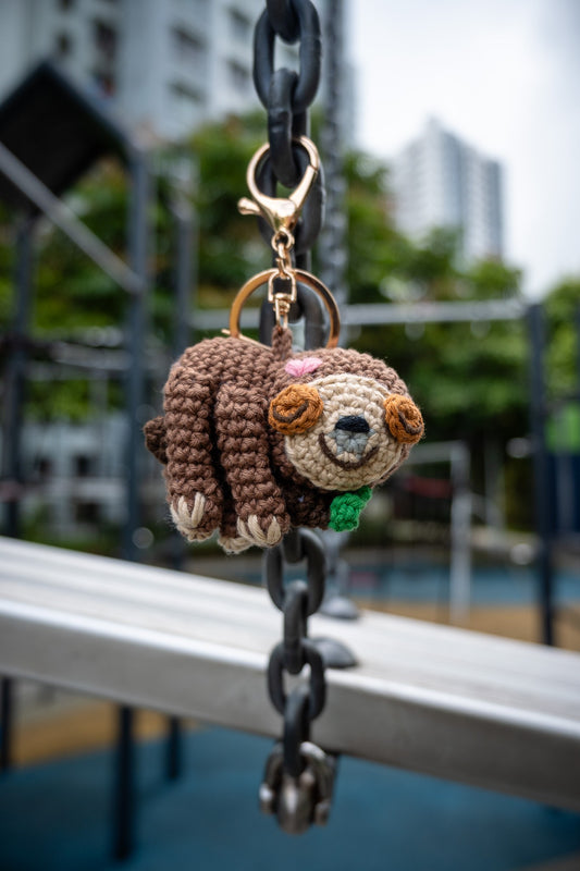 Crochet Lazy Sloth (on a twig) Key Ring